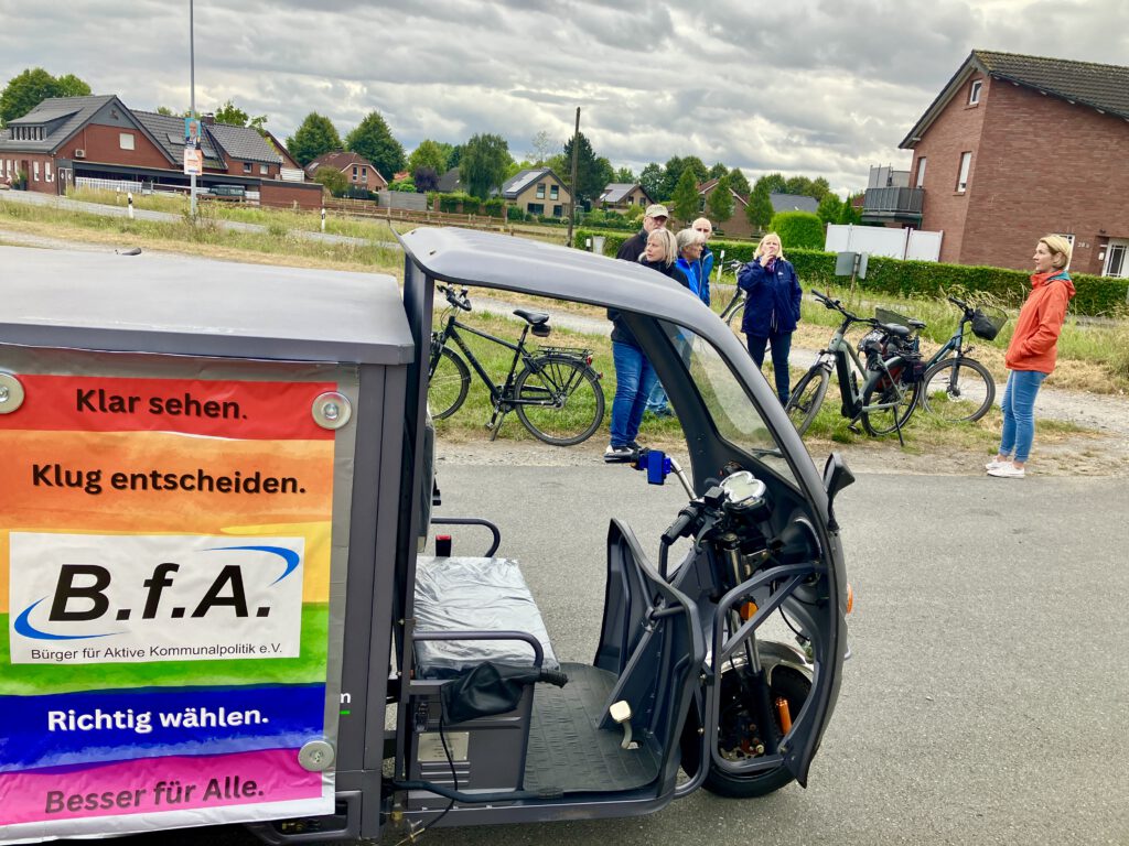 Zu einer sehr gut vorbereiteten Radtour trafen sich die BürgerInnen für Aktive Kommunalpolitik (B.f.A.) am vergangenen Samstag vor Haus Siekmann. Nach einleitenden Worten durch das Vorbereitungsteam und den Fraktionsvorsitzenden Hans Ulrich Menke startete die Fahrt mit dem Tuk Tuk voran zu folgenden Zielen: Fußgängerzone / Weststraße In der Fußgängerzone war das Hauptgesprächsthema der B.f.A mit […]